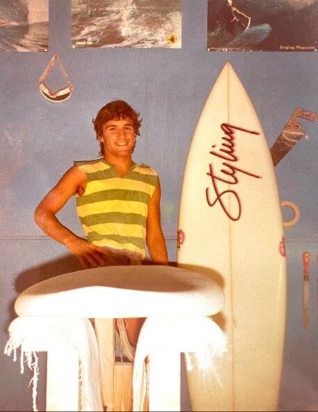 Kike compra su primera tabla en Francia junto a sus padres. Ese momento despierta su pasión por el surf y siembra la semilla de lo que después sería Styling Surfboards.