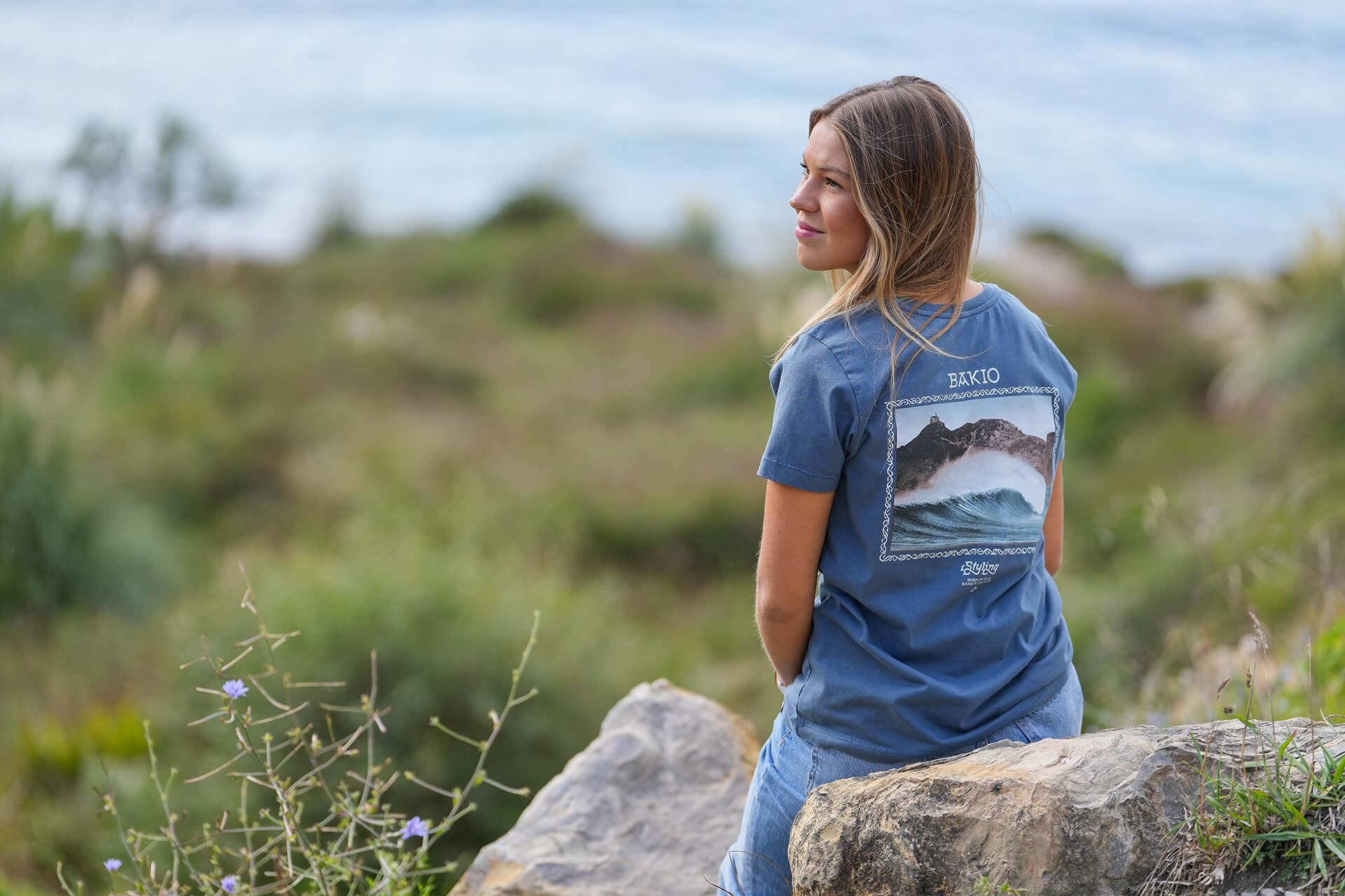 Sudadera Styling – Modelo Mundaka Sudadera con capucha en color negro, con estampado pequeño en el pecho y gráfico grande en la espalda. Un diseño femenino con inspiración surf del Cantábrico.Colección Basque Line Ups